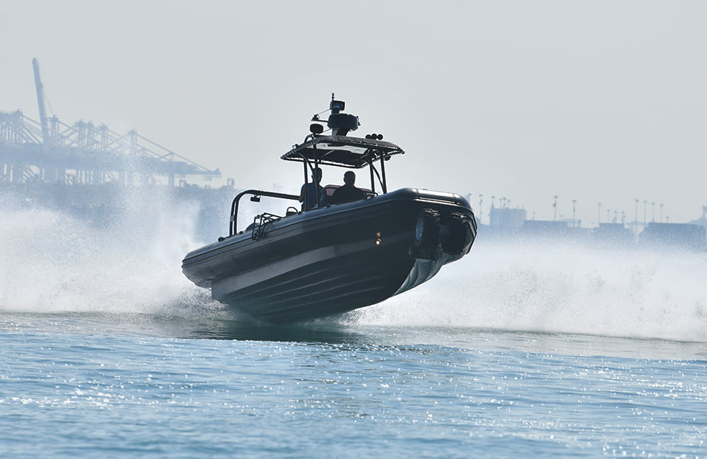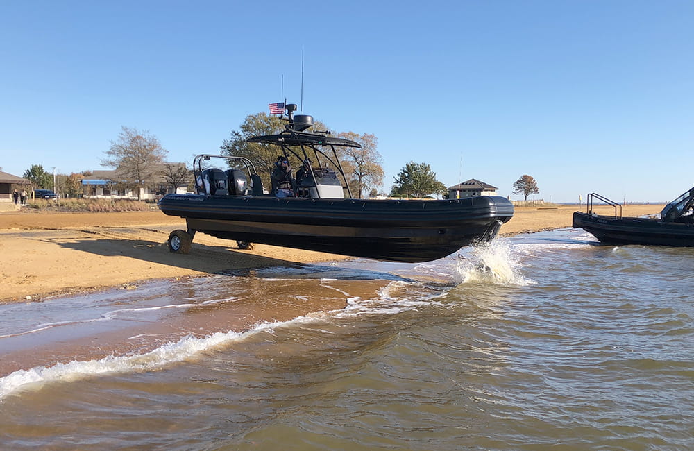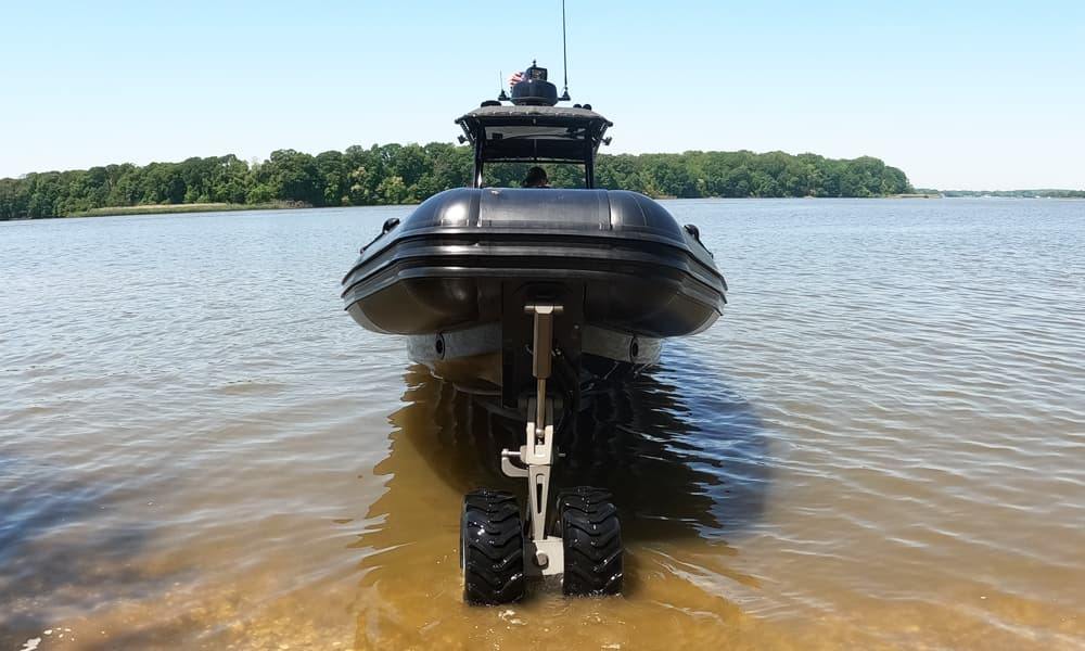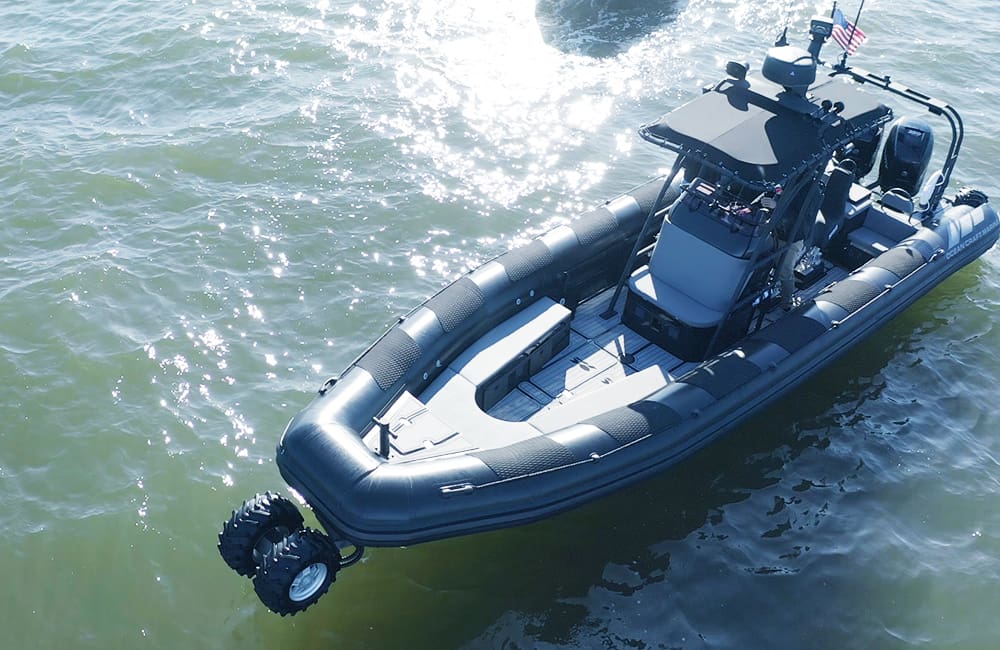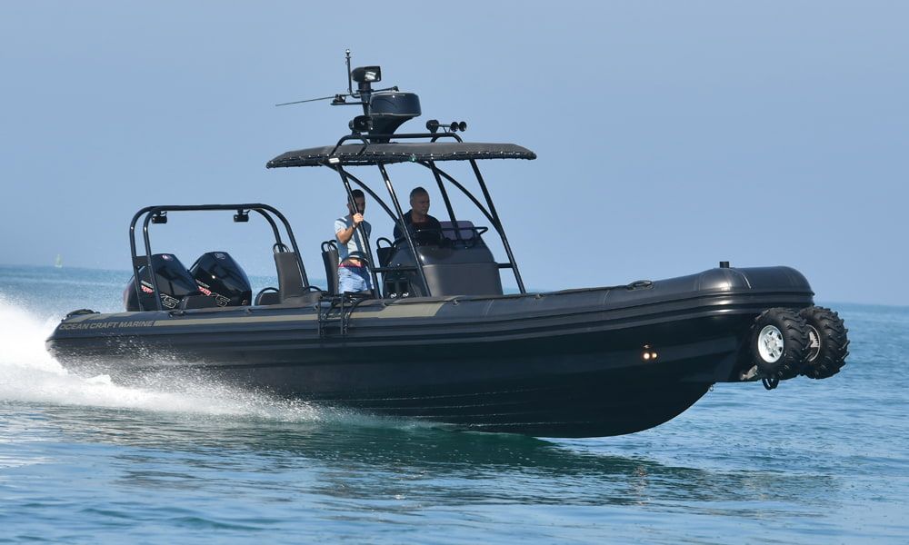 More “then” just a boat with wheels, these versatile RHIBs are powered by Ocean Craft Marine’s advanced AAS-100 Amphibious system, comprised of four independently motorized retractable and steerable wheels that offer high stability on land combined with exceptional on-water performance of an Ocean Craft Marine boat.